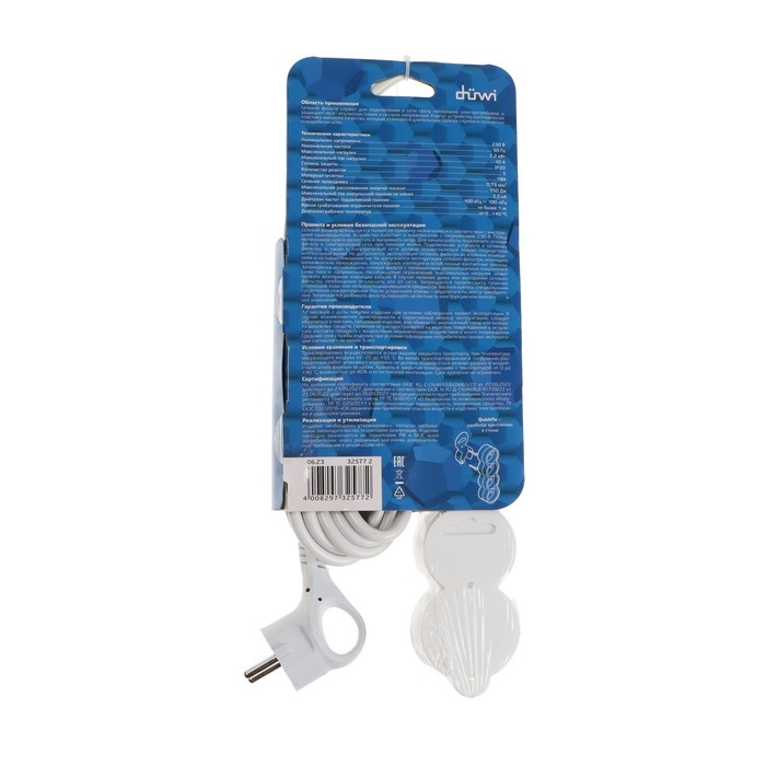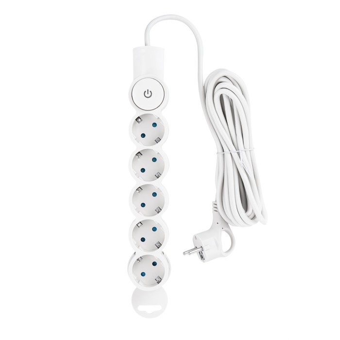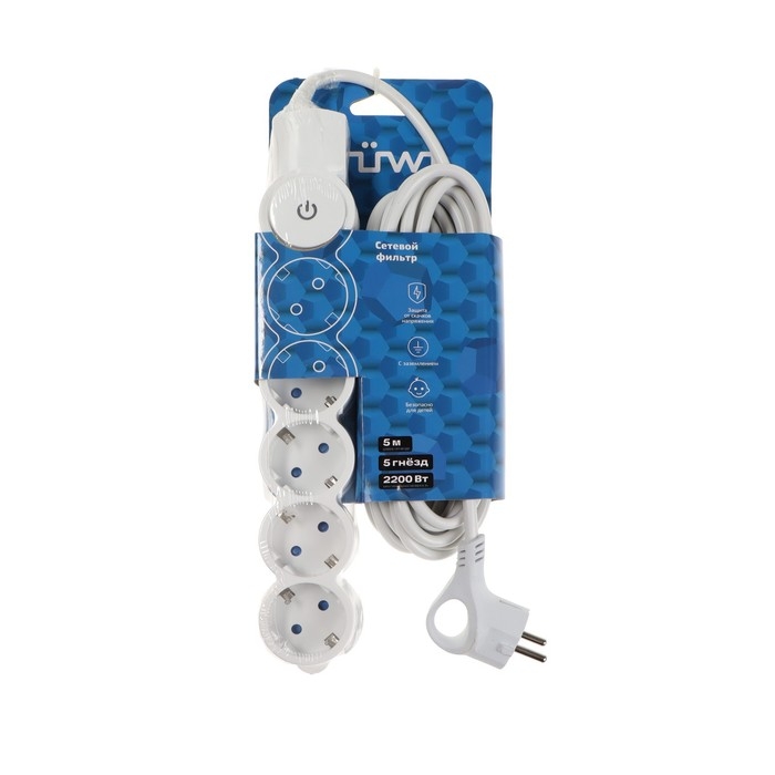 Сетевой фильтр, 5 гнезд, 5м, с/з, со шторками, с выкл, 2200Вт, 10А, бел, 32577 2, duwi