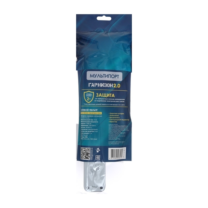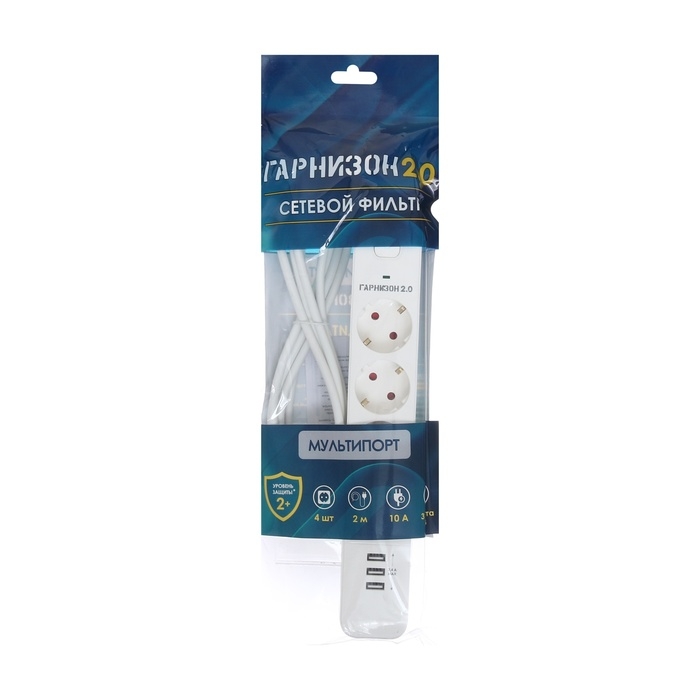 Сетевой фильтр Гарнизон 2.0 Мультипорт EPS-4-U3-W-2, 4 р, 10А, 3xUSB, 2м, ур.защиты 2+, белы 1034186