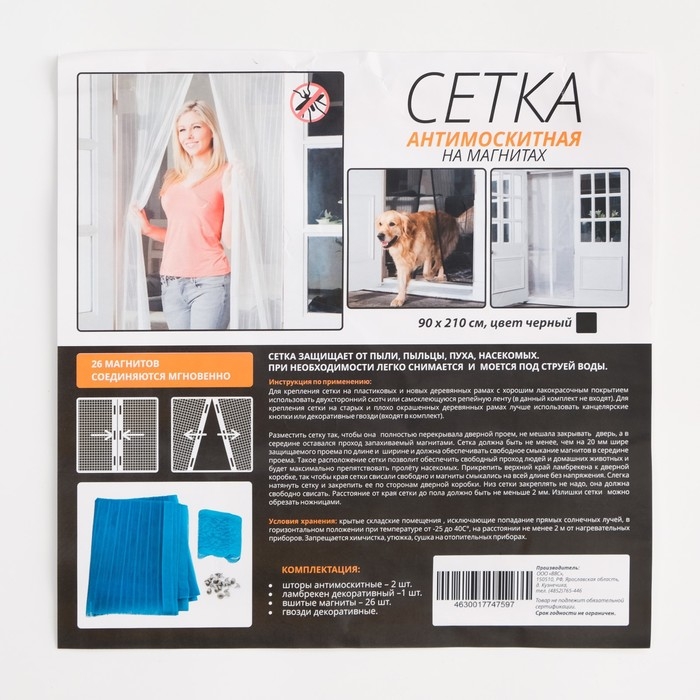 Сетка антимоскитная для дверей, 90 × 210 см, на магнитах, цвет черный