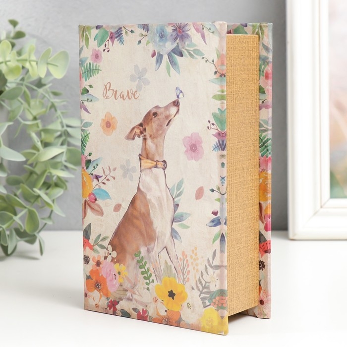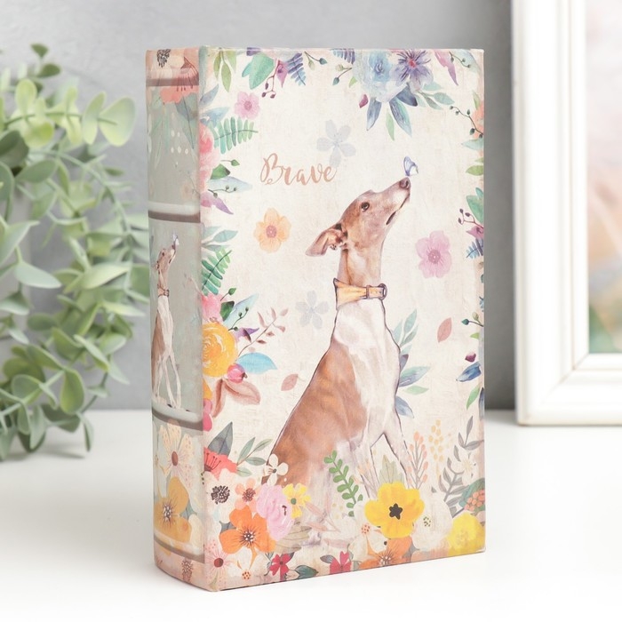 Сейф-книга дерево кожзам "Борзая в цветах" 17х11х5 см