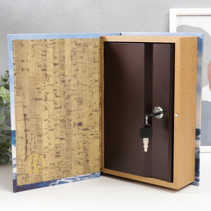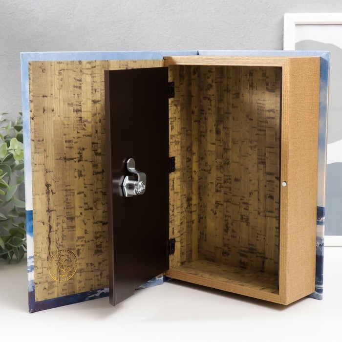 Сейф-книга дерево кожзам "Чайки и море. Золото" 27х18х7 см