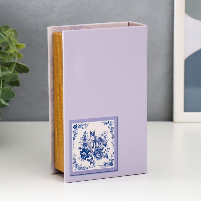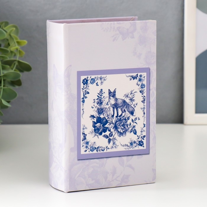 Сейф-книга дерево кожзам "Синие цветы и лисица" 17х11х5 см