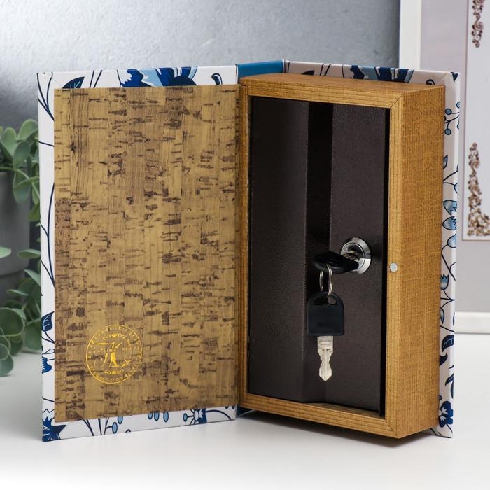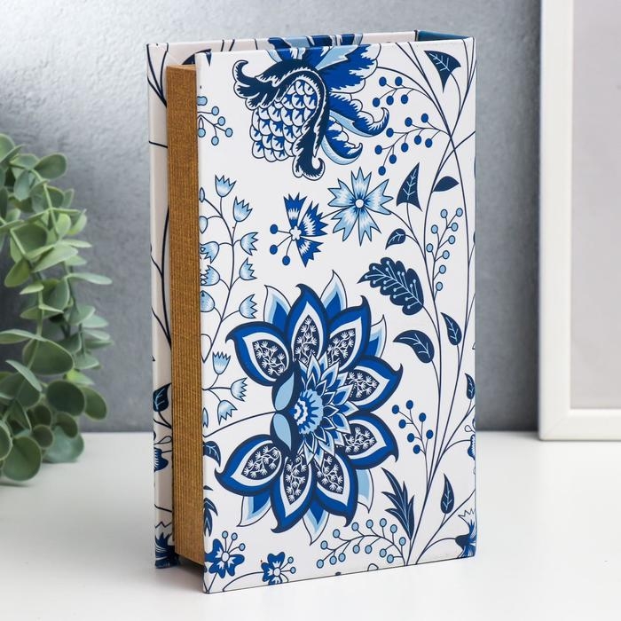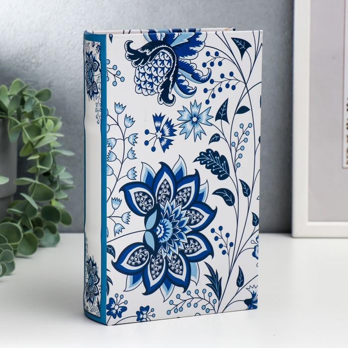 Сейф-книга дерево кожзам "Сказочные синие цветы" 21х13х5 см