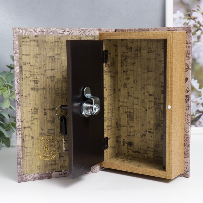 Сейф-книга дерево кожзам "Стрекоза и старинные чертежи" 21х13х5 см