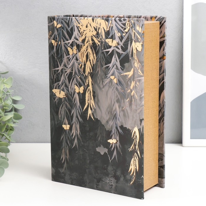 Сейф-книга дерево кожзам "Золотые бабочки в джунглях" 27х18х7 см