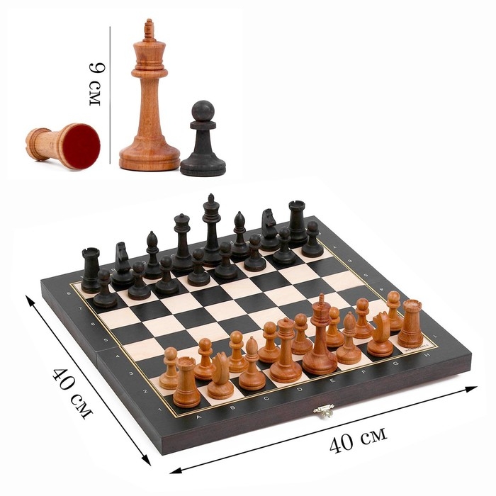 Шахматная деревянная лакированная доска выполнена из бука. Размер доски в разложенном виде 40 х 40 см. Доска имеет аккуратную и надежную фурнитуру и вместительный отсек для хранения. Фигуры оснащены утяжелителем, за счёт чего игровой процесс будет протекать комфортно, их приятно и удобно держать в руке. Они выполнены из дерева, имеют привлекательный внешний вид и длительный срок службы.