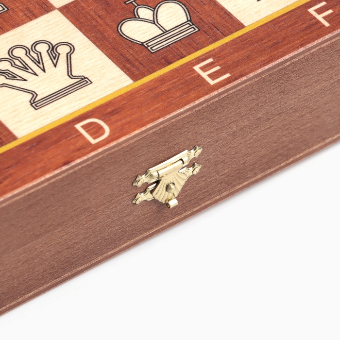 Шахматная деревянная лакированная доска выполнена из бука. Размер доски в разложенном виде 37 х 37 см. Доска имеет аккуратную и надежную фурнитуру и вместительный отсек для хранения. Фигуры оснащены утяжелителем, за счёт чего игровой процесс будет протекать комфортно, их приятно и удобно держать в руке. Они выполнены из дерева, имеют привлекательный внешний вид и длительный срок службы.