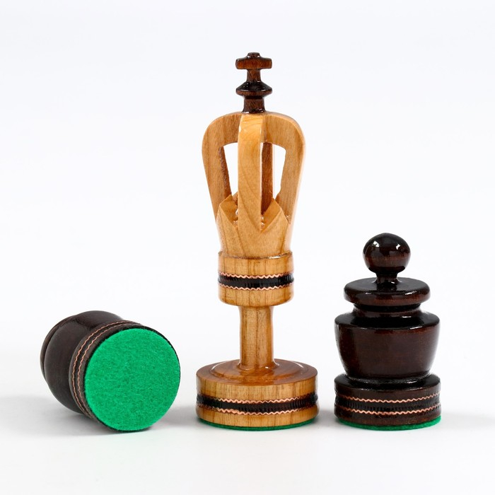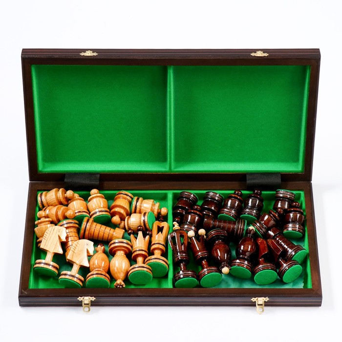 Наличие бархата зеленого цвета добавляет изыска изделию, а для удобного хранения шахматных фигур предусмотрены специальные отсеки, что обусловливает минимум передвижения при переноске.