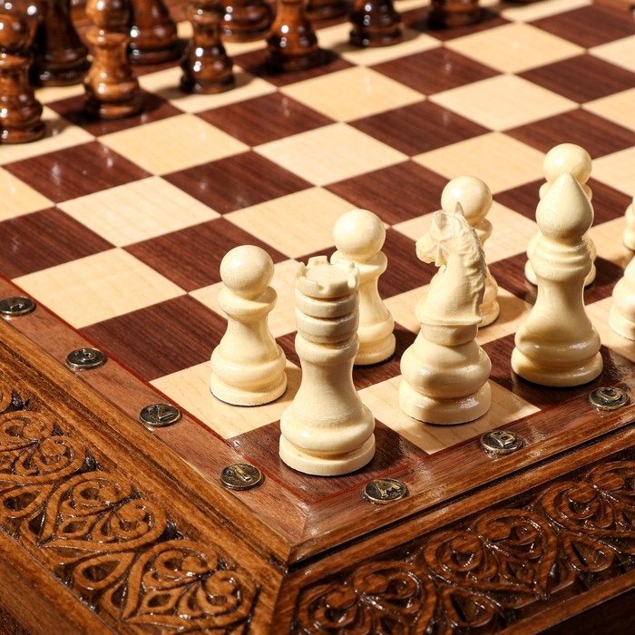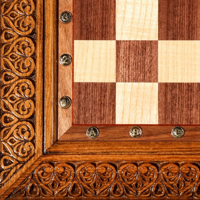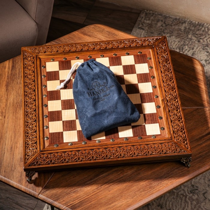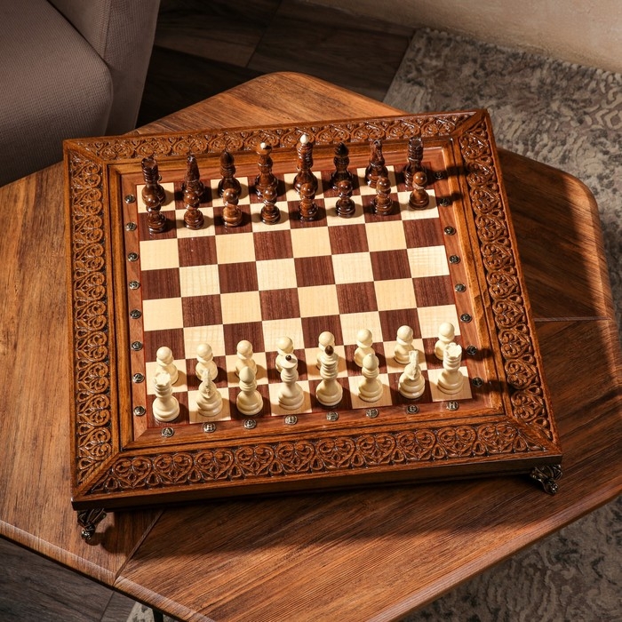 Шахматы ручной работы "Гроссмейстер", глубокая резка, на ножках, 55х55 см, массив ореха, Армения