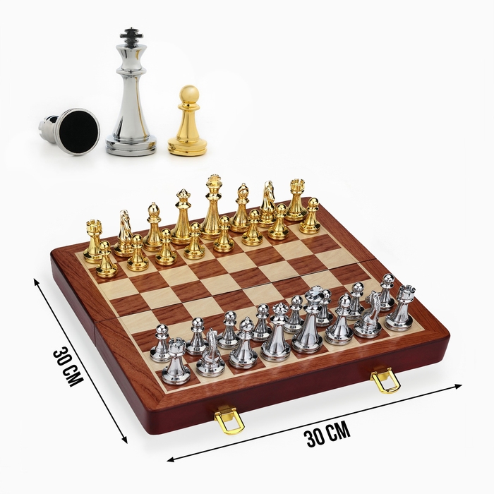 Шахматы сувенирные, деревянная доска 30 х 30 см, металлические фигуры