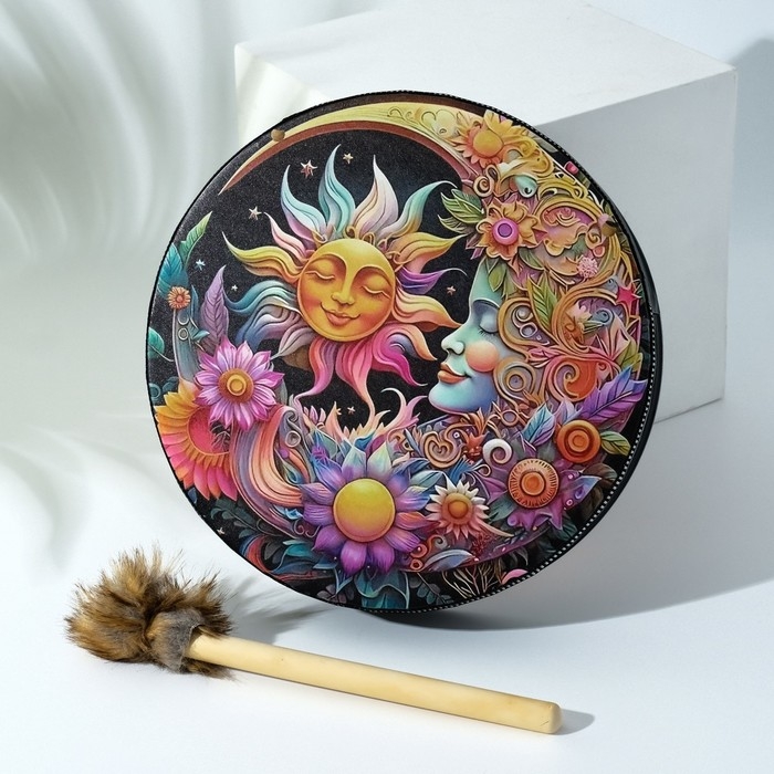 Шаманский бубен "Богиня. Месяц и солнце" с колотушкой 5х25х25 см