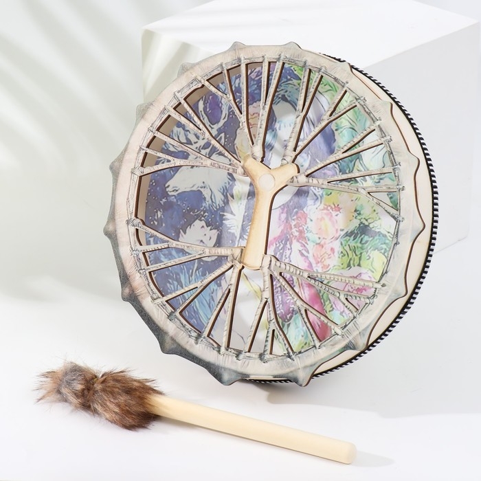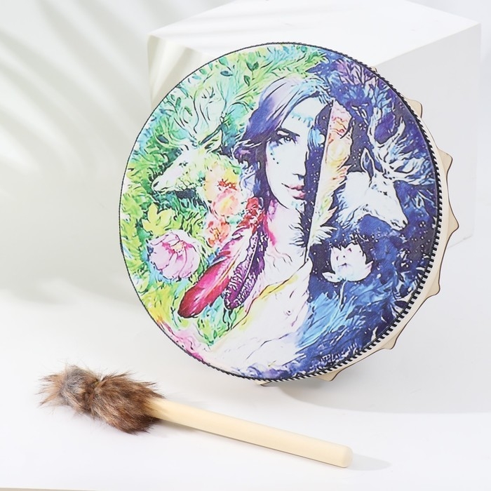 Шаманский бубен "Девушка и олени" с колотушкой 5х25х25 см