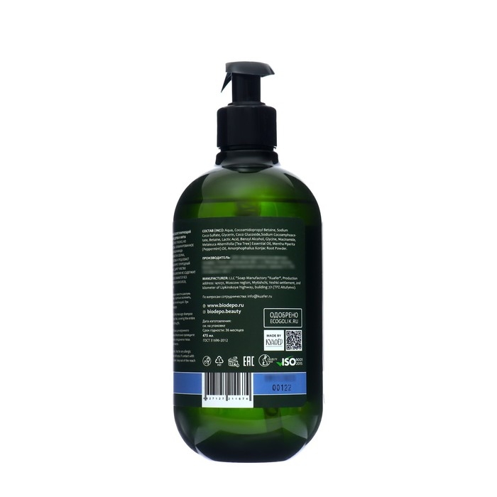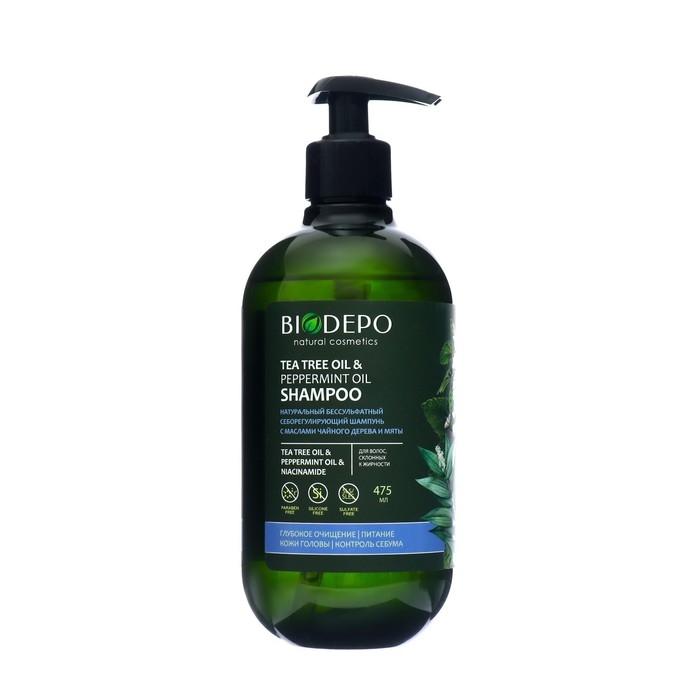 Шампунь Biodepo бессульфатный натуральный себорегулирующий с маслами чайного дерева и мяты