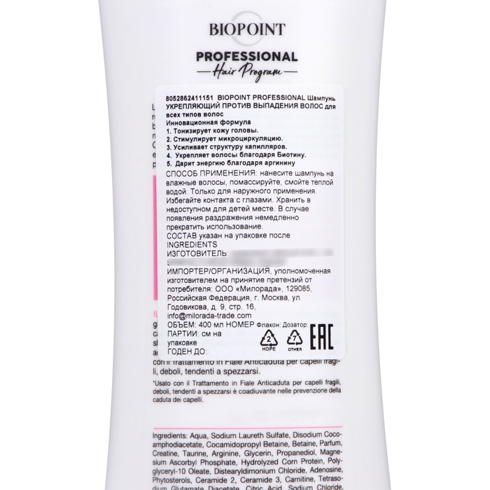 BIOPOINT PROFESSIONAL Шампунь УКРЕПЛЯЮЩИЙ ПРОТИВ ВЫПАДЕНИЯ ВОЛОС обладает уникальными характеристиками: