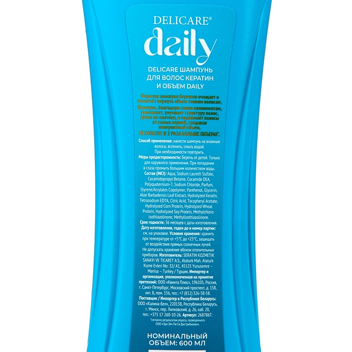 Шампунь для волос Delicare Daily кератин и объем, 600 мл