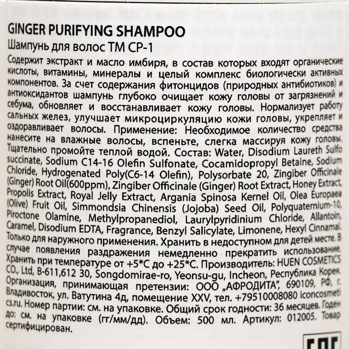 Шампунь для волос CP-1 cодержит экстракт и масло имбиря, в состав которых входят органические кислоты, витамины, минералы и целый комплекс биологически активных компонентов.