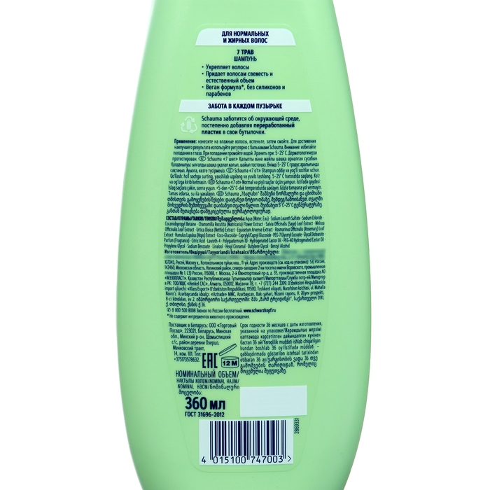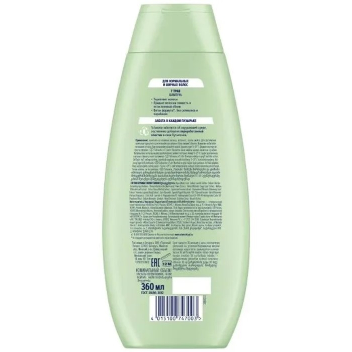 Шампунь Schauma «7 Трав» – это продукт, обогащенный семью различными травами, предназначенный для ухода за волосами. Вот ключевые характеристики этого продукта: