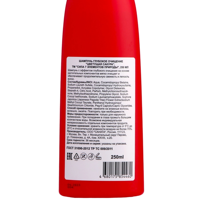 Шампунь Сила 7 Элементов природы глубокое очищение "Цветущая Сакура", 250 мл