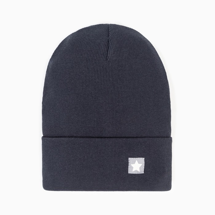 Шапка детская двухслойная, цвет т.серый/звездочка, размер 50-54
