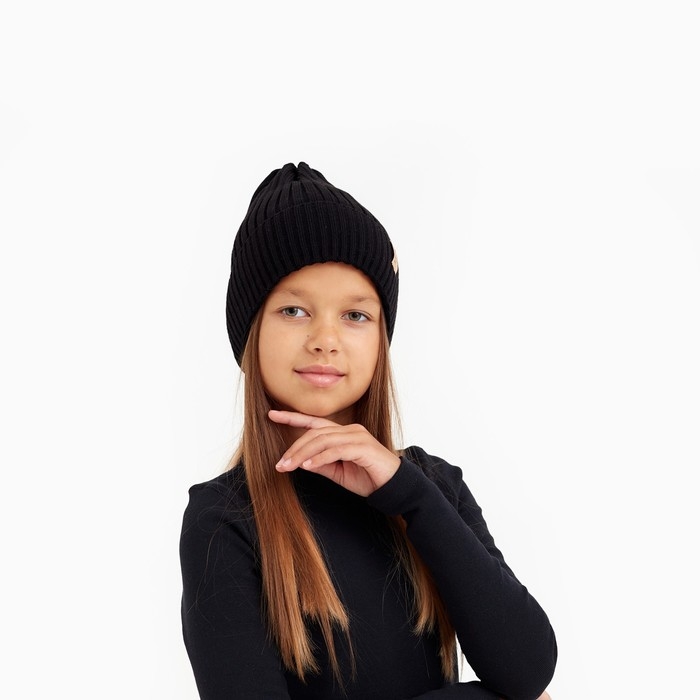 Шапка детская MINAKU с отворотом р-р 52-56, цв.чёрный