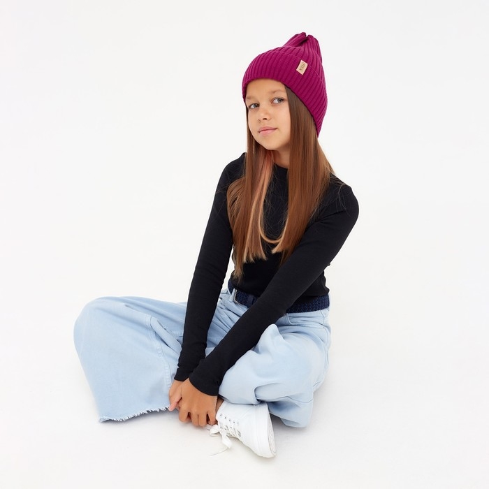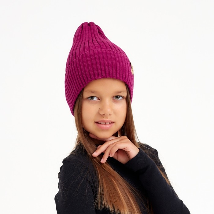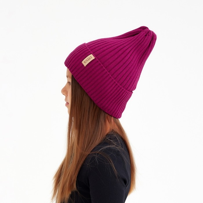 Шапка детская MINAKU с отворотом р-р 56-58, цв.малиновый