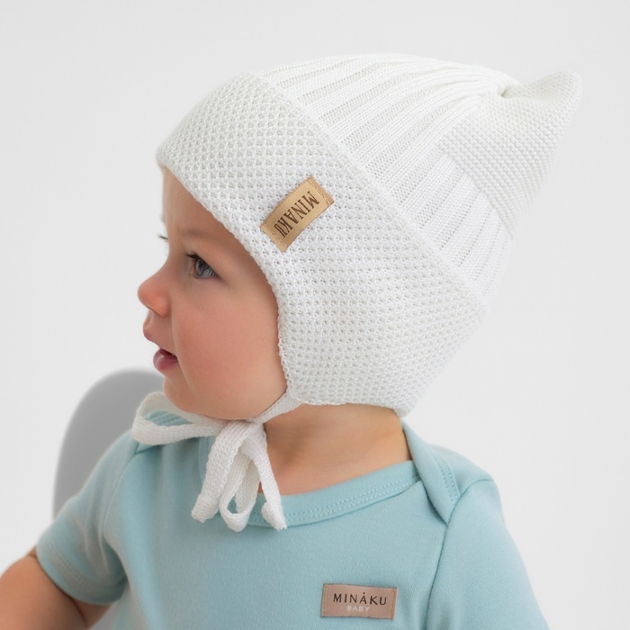 Шапка детская с ушками MINAKU р-р 46-48, цвет молочный