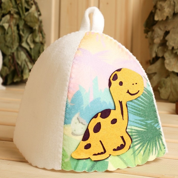 Шапка для бани детская с аппликацией динозавра "Лео", войлок
