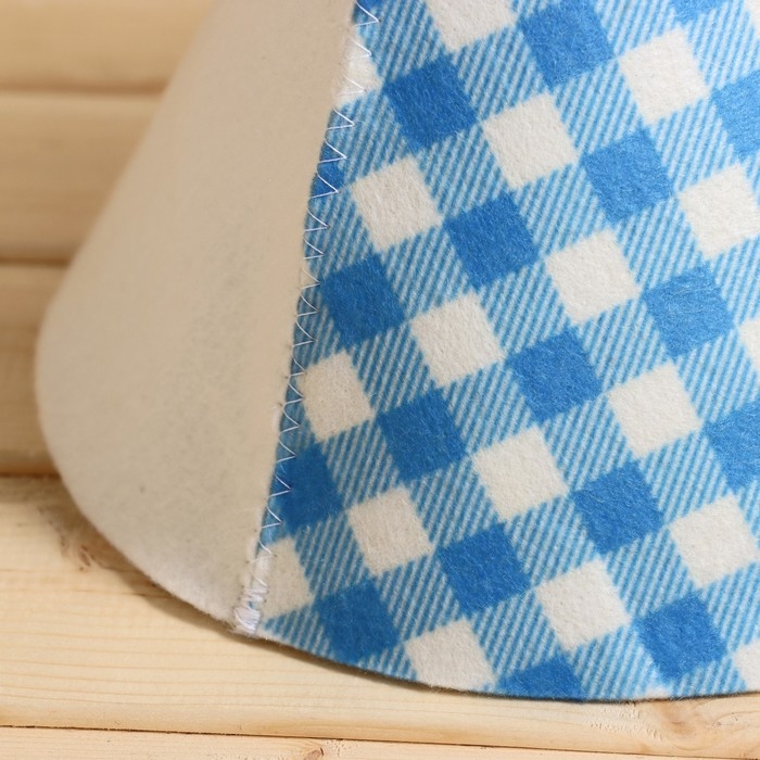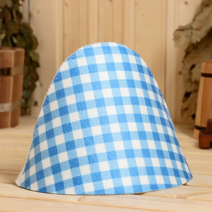 Шапка для бани "Клетка голубая" принт