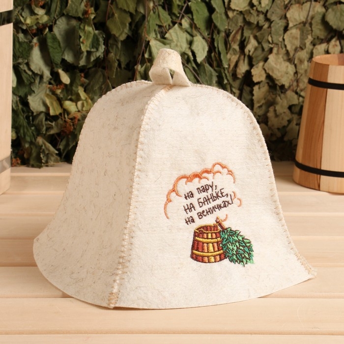 Шапка для бани "На пару, на баньке, на веничках" полушерсть