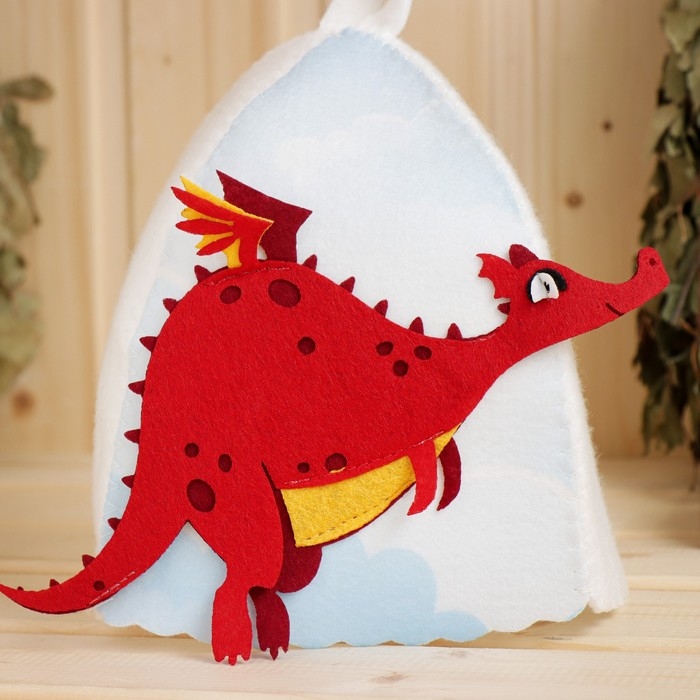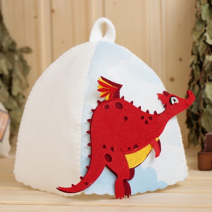 Шапка для бани с детской аппликацией "Летящий дракон", красный