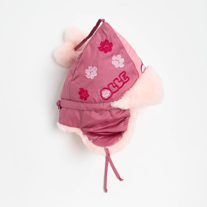 Шапка для девочки "Бом с вышивкой" , цвет брусника/светло-розовый, размер 48