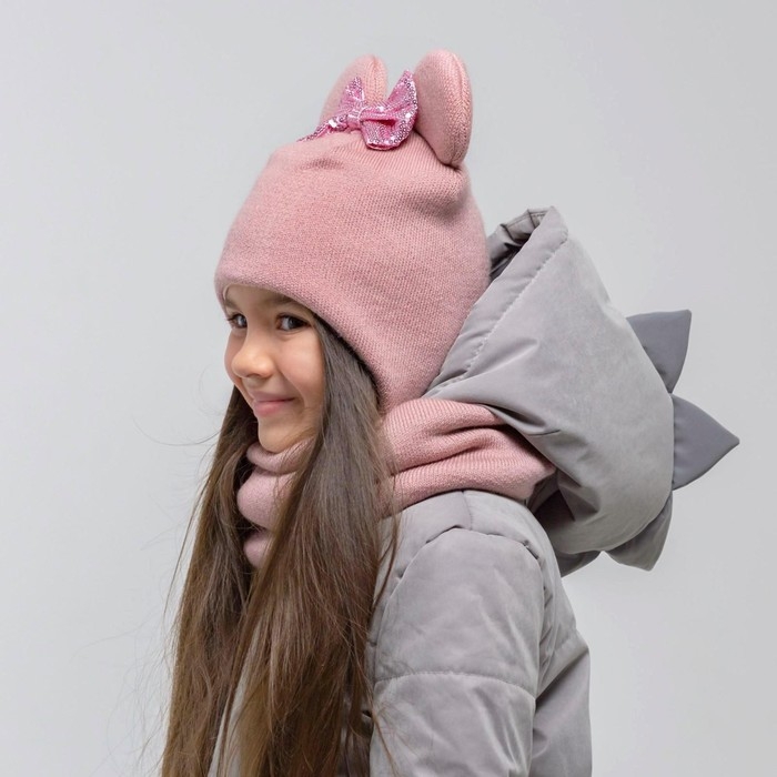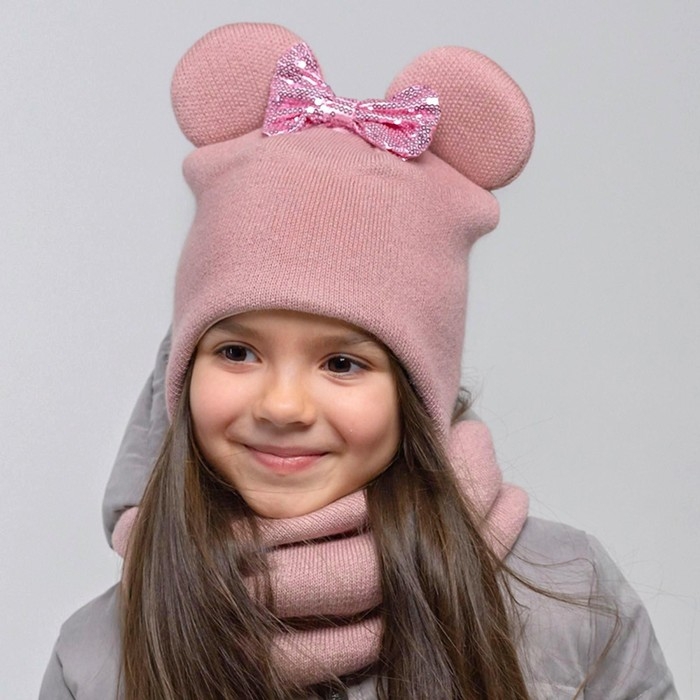 Шапка для девочки, цвет пудра, размер 42-46