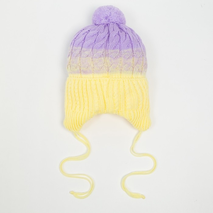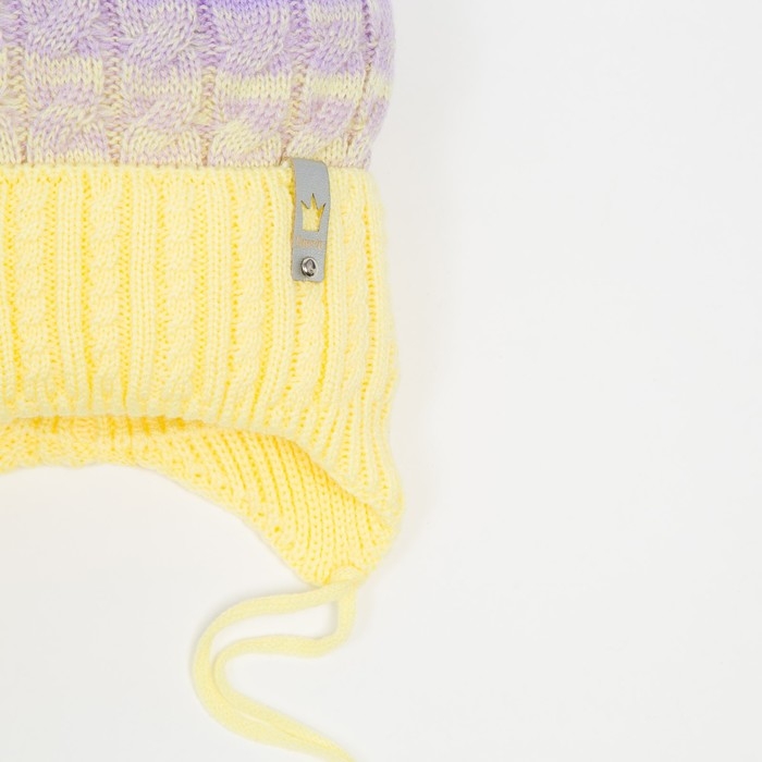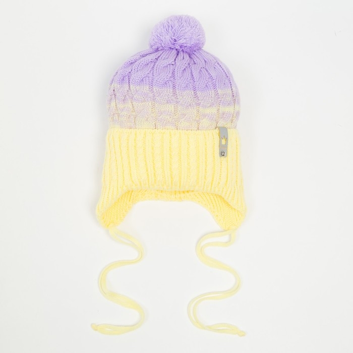 Шапка для девочки, цвет желтый/сиреневый, размер 53-56 см