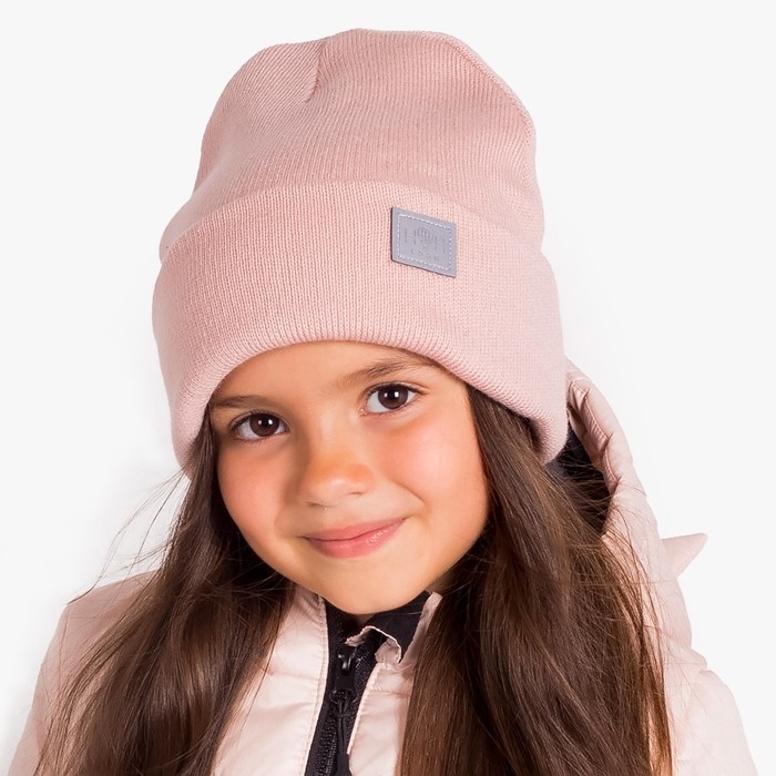 Шапка для девочки двухслойная , цвет пудра, размер 54-58