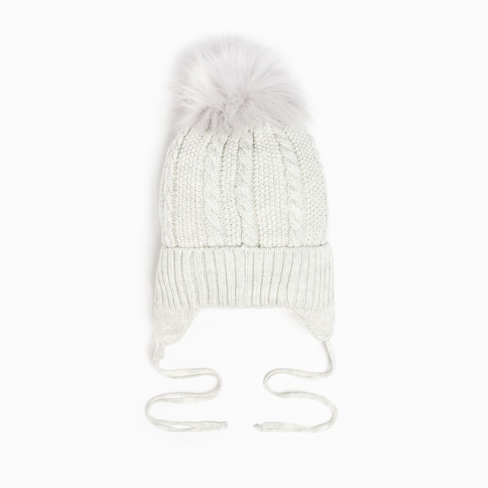 Шапка для девочки вязаная, цвет светло-серый, размер 44-47 см (9-18 мес.)