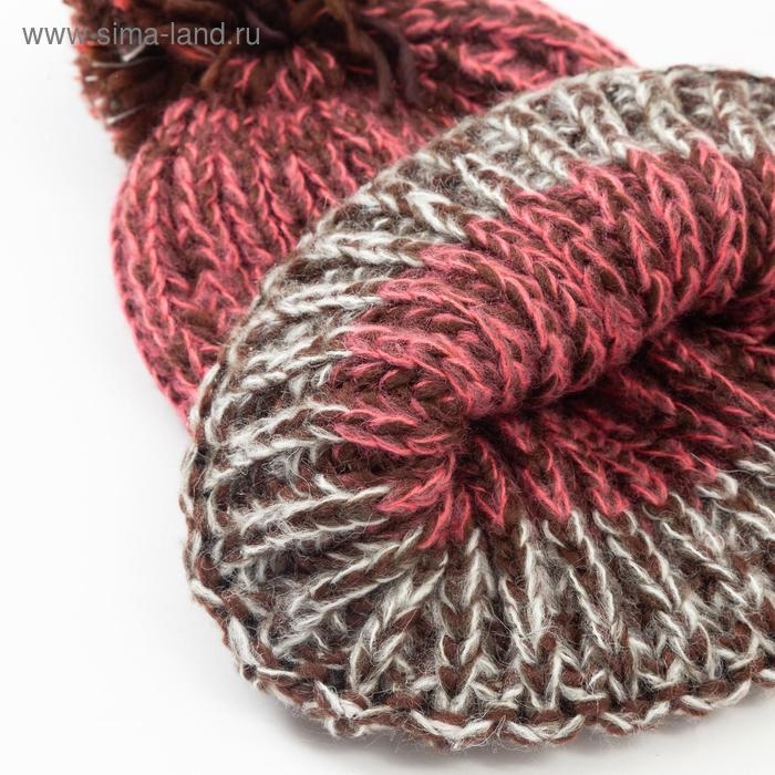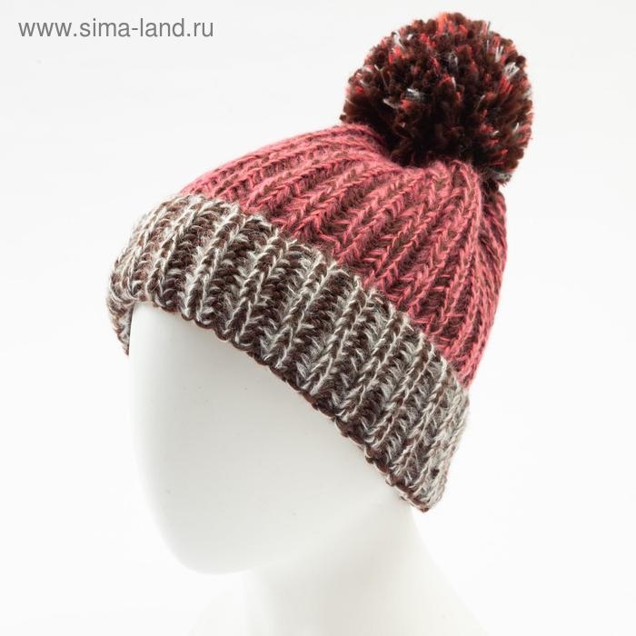 Шапка MINAKU вязаная с помпоном и подворотом, цвет апельсиновый, размер 52-54