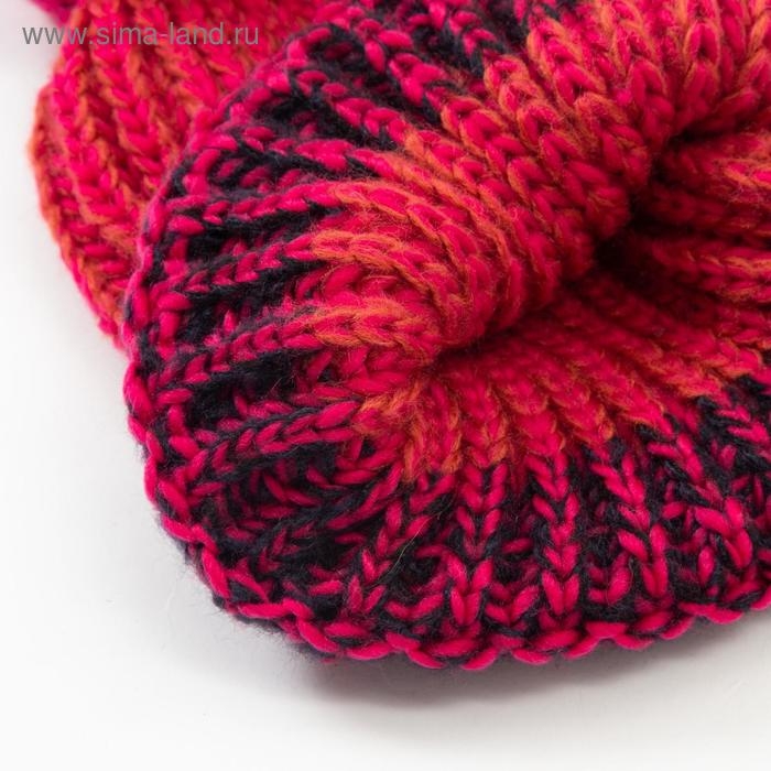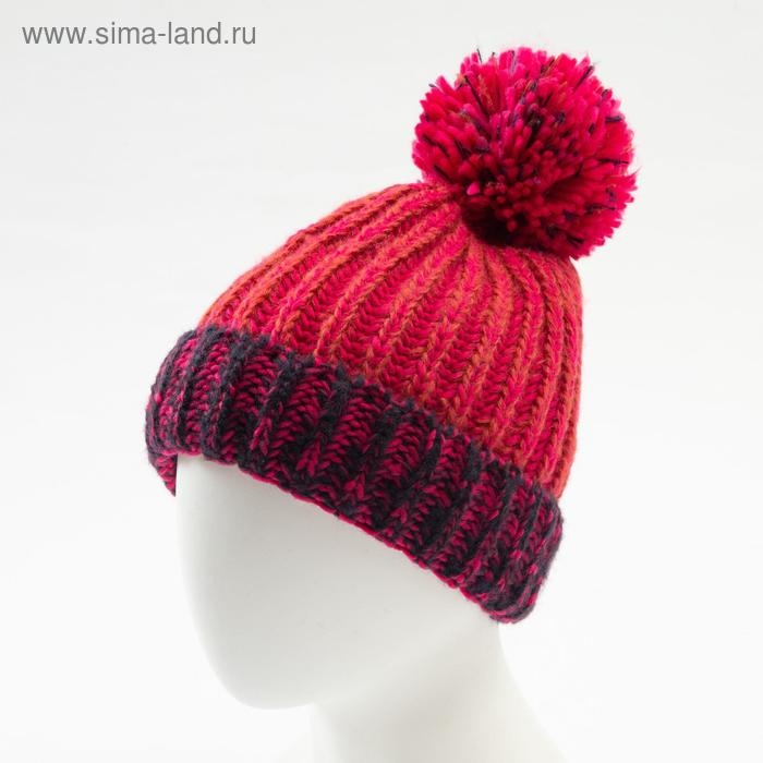 Шапка MINAKU вязаная с помпоном и подворотом, цвет розовый, размер 52-54