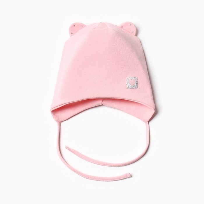 Шапка-мишка для девочки, цвет пудра, размер 42-46