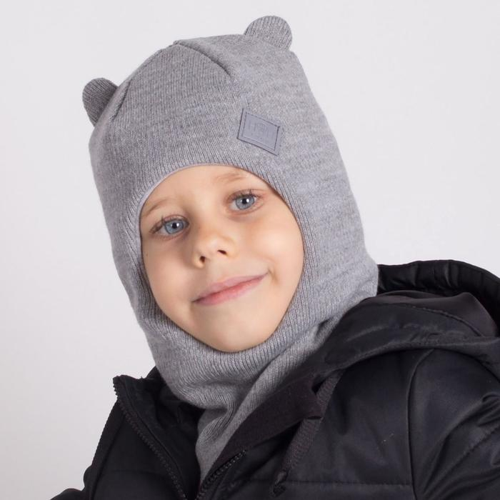 Шапка-шлем для мальчика, цвет серый, размер 46-50