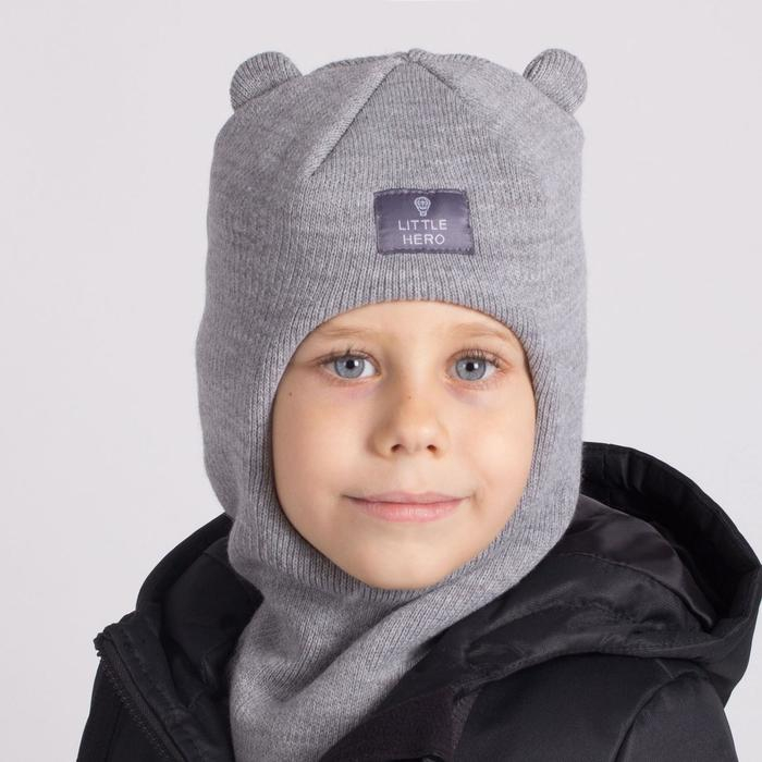 Шапка-шлем для мальчика, цвет серый, размер 50-54