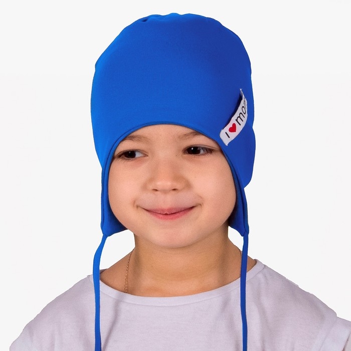 Шапка весенняя детская, цвет василек/I love mom, размер 50-54