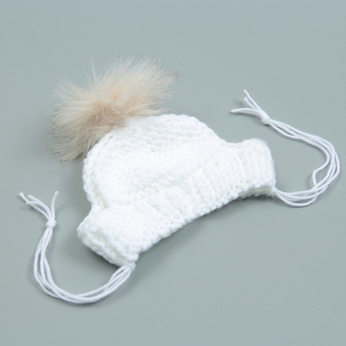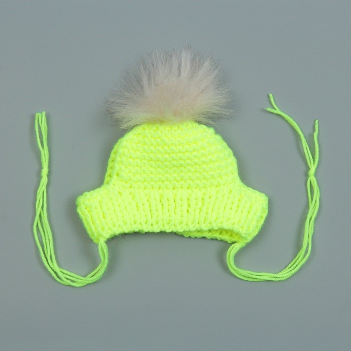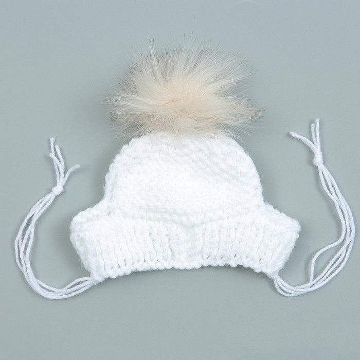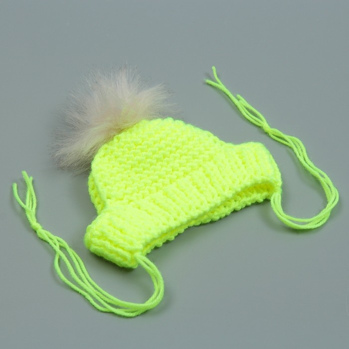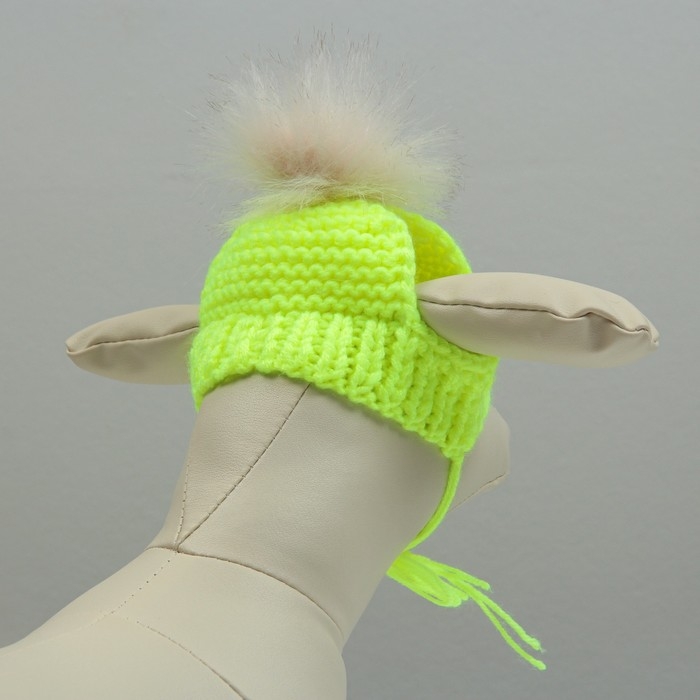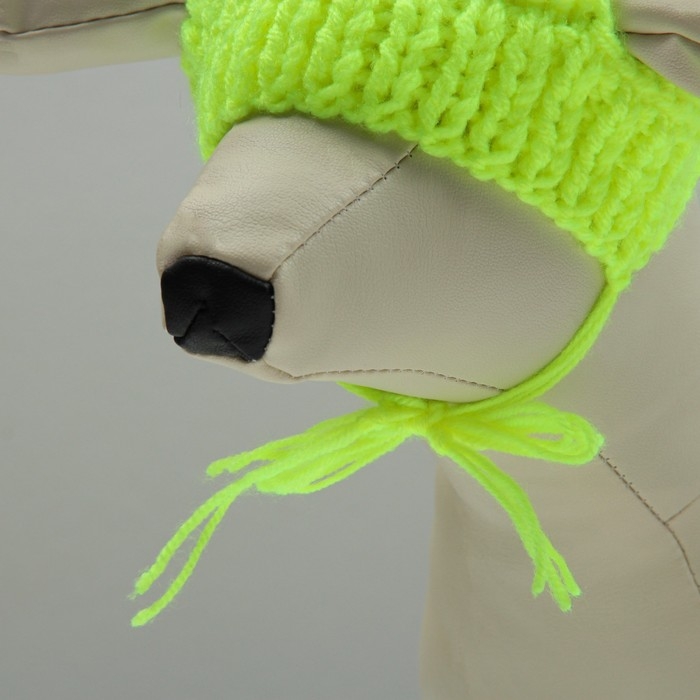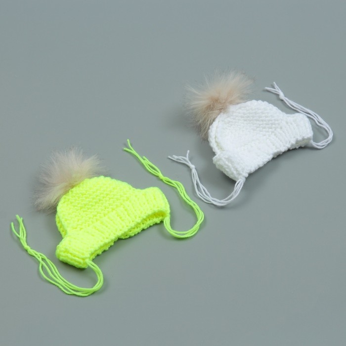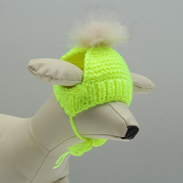 Шапка вязаная для собак, с помпоном, M-L (объем головы 28 см, высота 9 см), микс