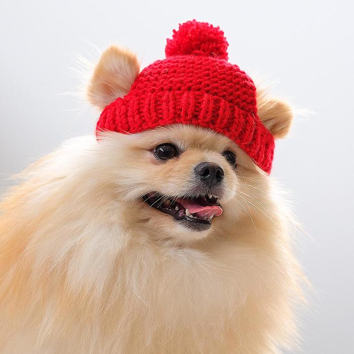 Шапка вязаная для собак, XS-S (объем головы 22-24 см, высота 7,5 см), микс