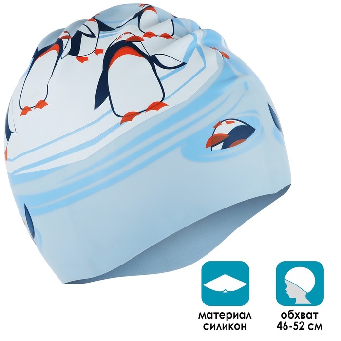 Шапочка для плавания детская ONLITOP «Пингвины», силиконовая, обхват 46-52 см