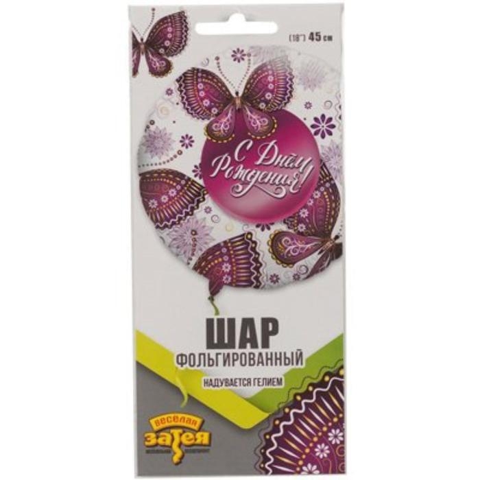 Шар фольгированный 18" «С днём рождения!», бабочки