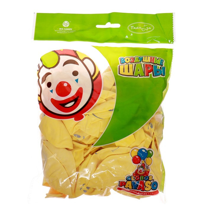 Шар латексный 12" «Смайл», пастель, 1-сторонний, набор 50 шт., цвет жёлтый