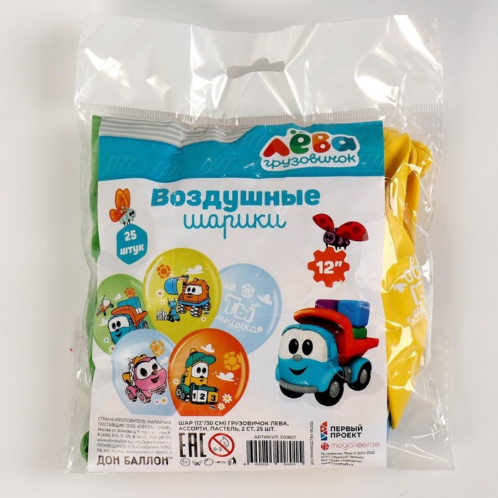 Шар латексный 12" «Грузовичок Лёва!», ассорти, набор 25 шт.