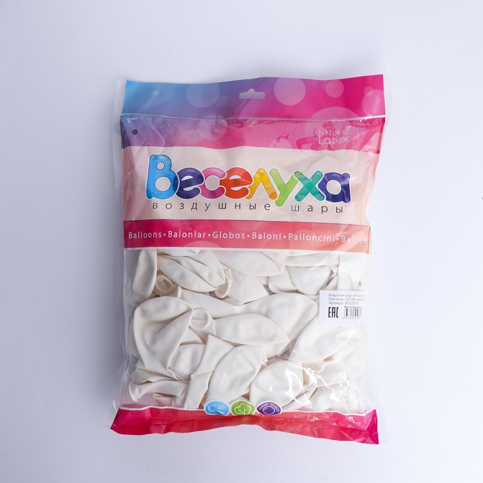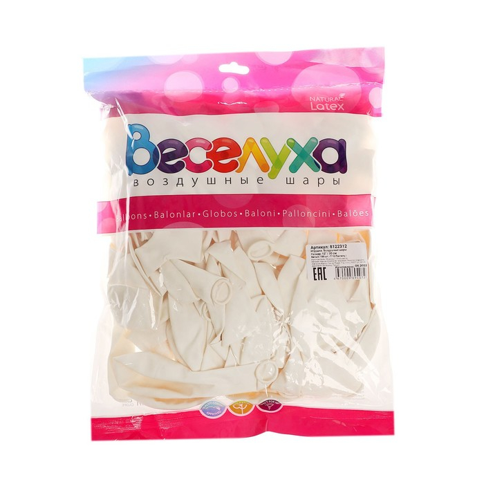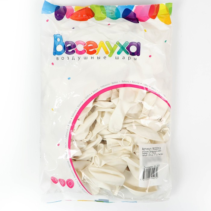 Шар латексный 12", пастель, набор 100 шт., цвет белый