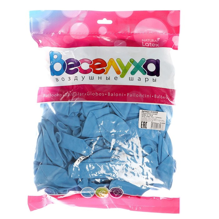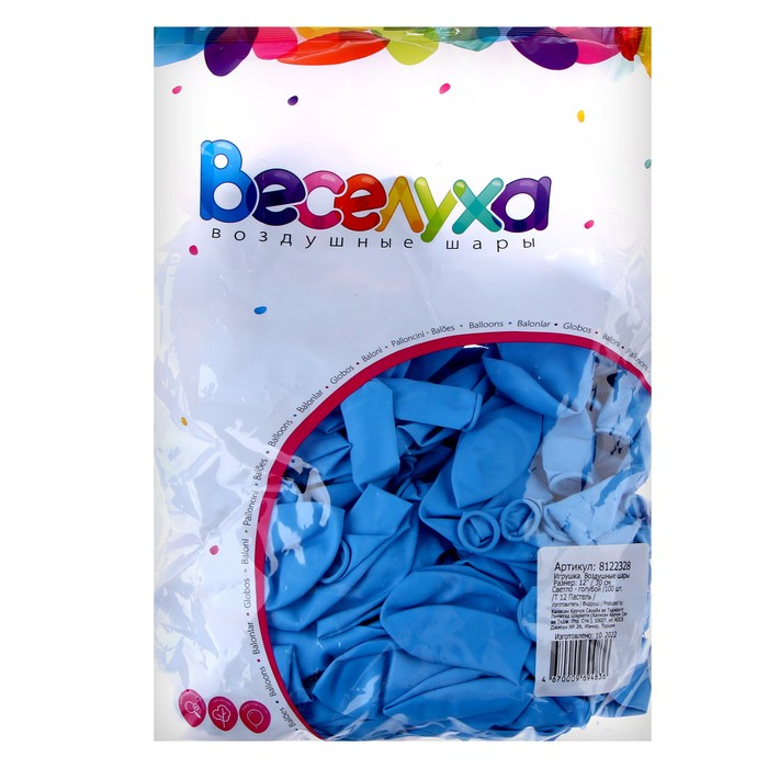 Шар латексный 12", пастель, набор 100 шт., цвет светло-голубой