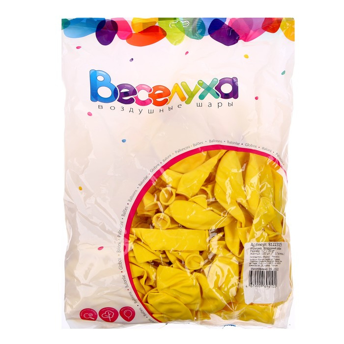 Шар латексный 12", пастель, набор 100 шт., цвет жёлтый